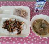 〇 もずくと豚ひき肉のジューシー 〇 じゃがいものみそ汁 〇 焼きれんこん...