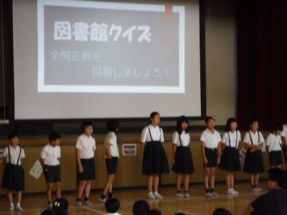 スクールワイドPBS 図書委員会と飼育・栽培委員会の発表 (6月13日集会)