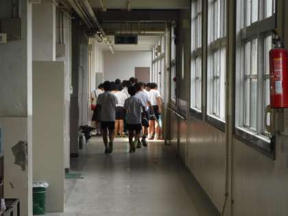 チャイムの合図と同時に、6年生が特別教室へ移動していました。