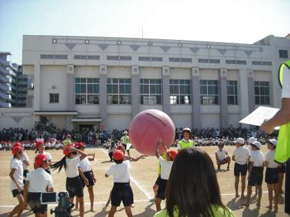 全学年児童による『喜連西みんなで大玉おくり!』の写真です。結果は引き分けでした。