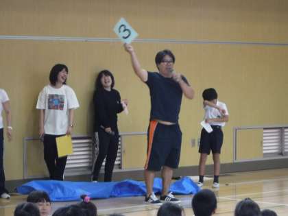 先生の声を当てる「わたしは誰でしょう?」をしました。