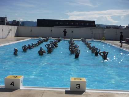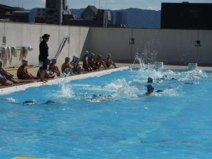 子どもたちは、学年の先生方から泳ぎ方のコツをしっかり聞いて、