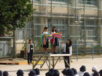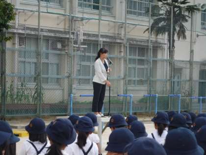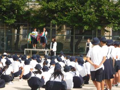 子どもたちは、がんばって校長先生や看護当番の先生の話を