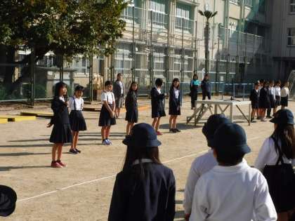 子どもたちは、すぐ整列し、話している人に体を向け、