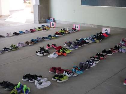 いつものように下靴を並べ、友だちの話もしっかり聞いています。