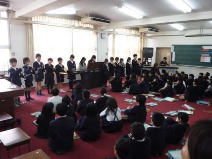 写真は、本日の3年生の音楽科授業研究会の様子です。