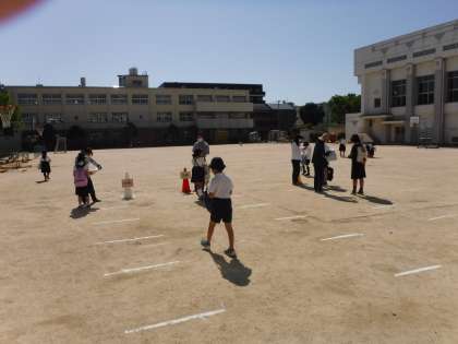 今日は、2・3・5年生の登校日です。登校日の様子をお知らせします。運動場で検温の確認をし、教室へ行きました。
