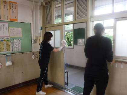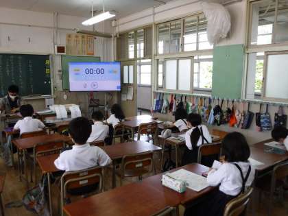 自己紹介カードと、日直カードをかきました。みんなのカードを壁に貼りますので、登校日に読んでみてくださいね。もう半分のお友達のことも知ることができますね。