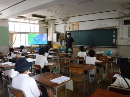 学習課題の説明を聞いていました。社会科では、NHK for schoolを視聴し、日本の国土の様子を学習しました。地球儀を見たり、日本地図で確認したりしました。