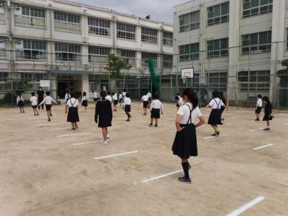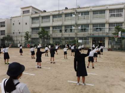 今日は、体育の学習をしました。間隔をあけて並び、ラジオ体操をしました。そして、体を伸ばしたり、縮めたりする柔軟体操をした後は、スキップで教室にもどりました。先生のお話の通りに、細かくや大きく、速くのスキップを楽しんでいました。