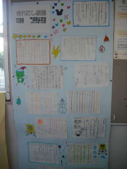 玄関近くの廊下に掲示している新聞委員会がつくった新聞12月号を是非読んでくださいというお知らせでした。