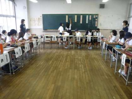 今日の議題は、「児童会目標を決めよう」です。4年生から6年生の学級代表と、各委員会の委員長が集まり、運営・計画委員会が議長団で、話し合いを進めました。