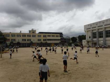 休み時間に遊べるのは何日ぶりでしょう。走ったりバスケットボールをしたりして、運動場で思い切り遊ぶことができました。