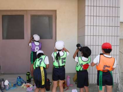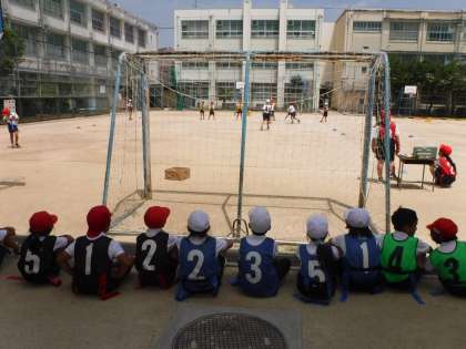 途中で水分補給タイムがあり、ゲームのないチームは日陰で応援します。