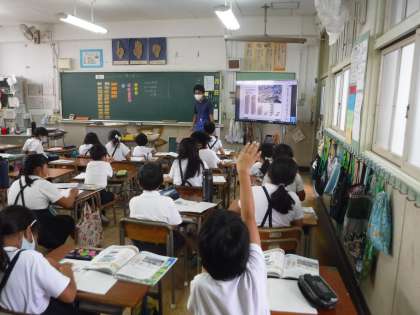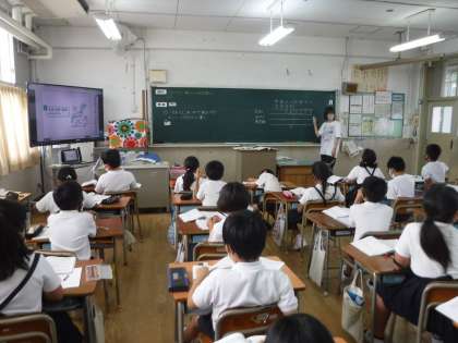 先生のお話をしっかり聞いたり、手をあげて答えたり、ノートに丁寧に書いたりしています。先生に褒めていただき、ますますやる気を出して元気にがんばっていました。