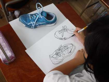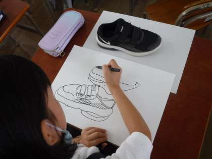 線描の4つの約束を意識して、心をこめて、お気に入りのくつを描きました。