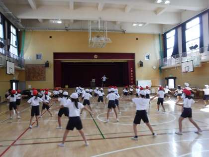 今日は、1組と2組でずれる動きでした。先生の「1・2・3・4」のカウントに合わせて、ずれる動きにもポーズをとって合わせることができました。
