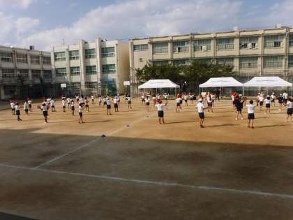 パーランクーの音が運動場に響き、みんなの流れるような動きが合ってきています。