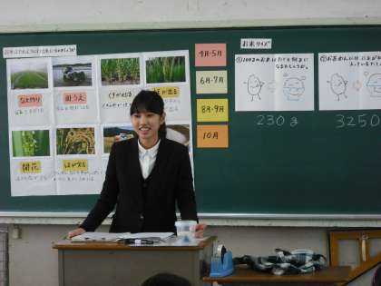 今月8日から今日まで、栄養教諭を目指している教育実習生の坂本 彩香さんが、4年生の教室で授業を行いました。