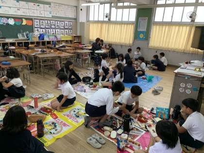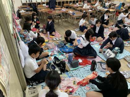 今日は4年生が遠足延期のため、敷物を敷いて、お弁当を教室で食べました。6時間の学習も、しっかりがんばりました。