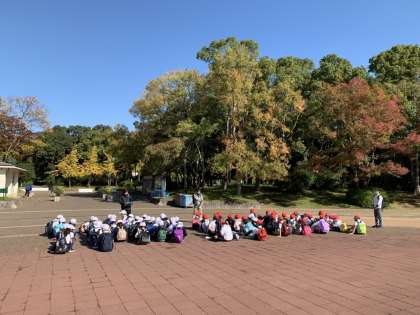 秋の紅葉の中、みんなで楽しく過ごしています。