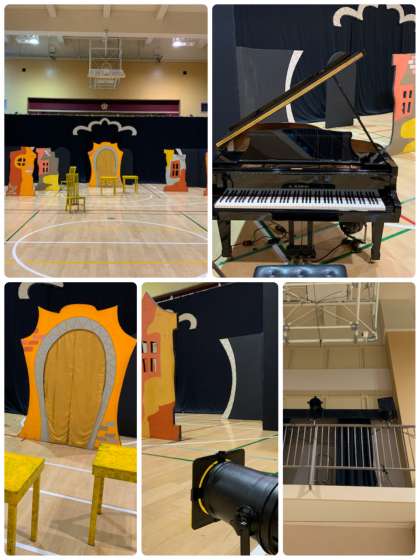 今日、こんにゃく座のみなさんが来校され、講堂の準備をされました。