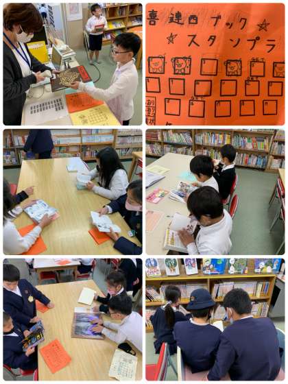 図書室で静かに読書を楽しんでいました。たくさんスタンプを集め、しおりをもらっていました。