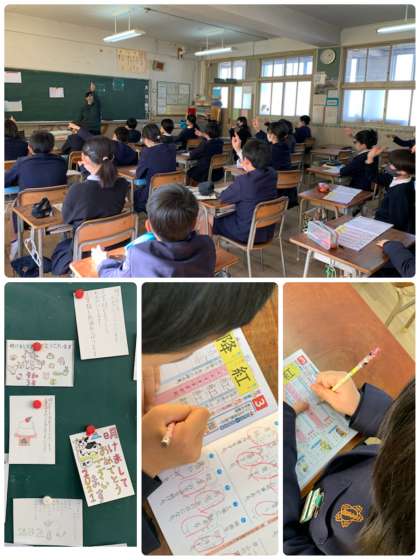 漢字の書き順や漢字の意味を、みんなで声に出しながら覚えていました。