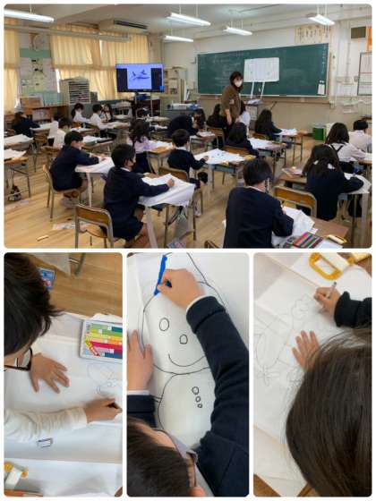 パスでのくるくる塗りに気をつけて、雪だるまやカブトムシなど大好きなものの絵をかきました。