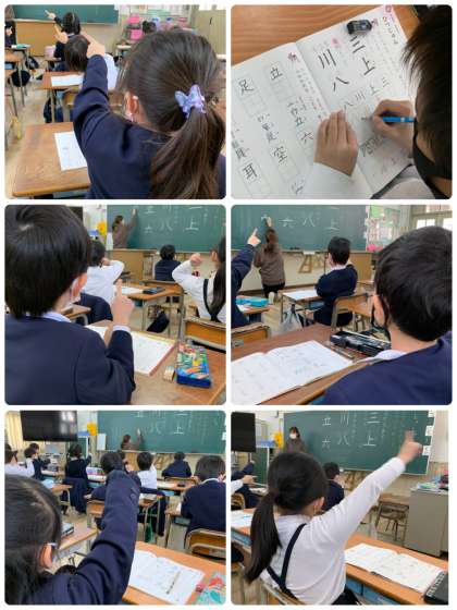 筆順のきまりを見つけながら、先生と一緒に書き順の学習をしました。