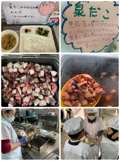 新型コロナウイルス感染症の感染拡大に伴う大阪府国産農林水産物学校給食提供事業の2回目、「泉たこ」が学校給食に提供されました。