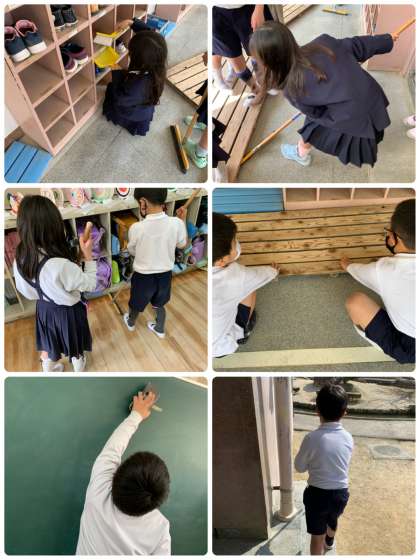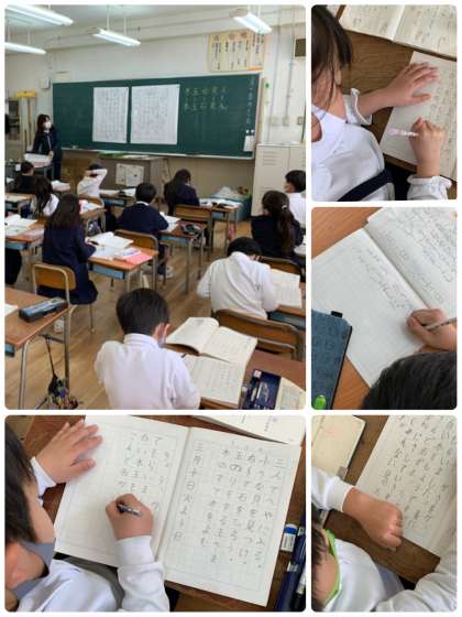 今日は、国語科で教科書を写したり、英語科で数や左右の言葉を身振り手振りで楽しんだりしていました。お掃除もとても上手になりました。