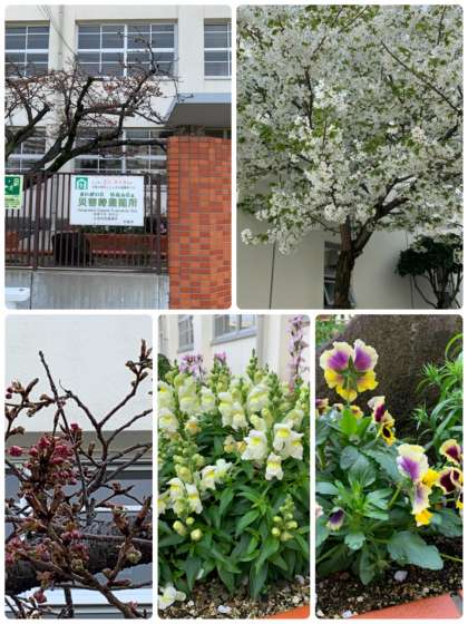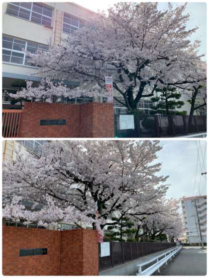 正門前の桜が満開です。