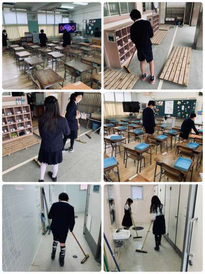 1年生が帰った後は、6年生が、1年生の教室、ろう下、トイレの掃除をしてくれています。