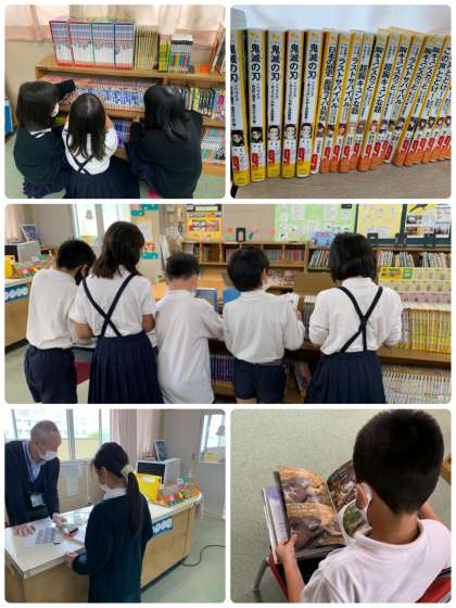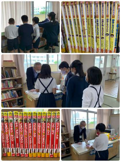 今日は、図書館支援員の先生が図書の貸し出しをしてくださいました。
