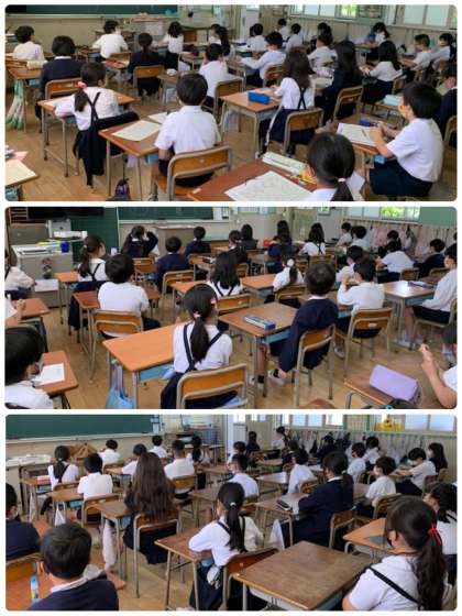 校長先生のお話のあと、各クラスでは、担任の先生と「いじめ」についてお話をしたり、「いじめアンケート」に答えたりしました。