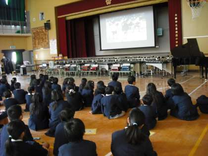 3月5日(木)1時間目、全校で講堂に集まり、卒業おめでとう集会をしました。