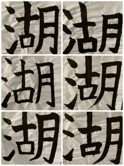 6年生は、習字で「湖」を書きました。3つの部分の形や高さに気をつけて書きました。