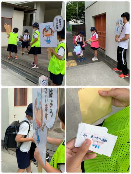 児童朝会では、「あいさつ週間」のお知らせをしてくれました。