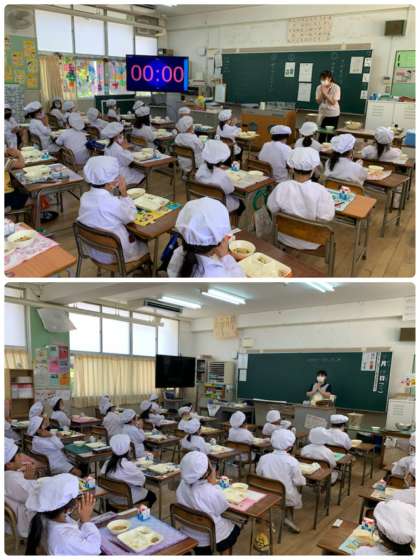 1年生も、たくさんおかわりをして、おいしくいただきました。