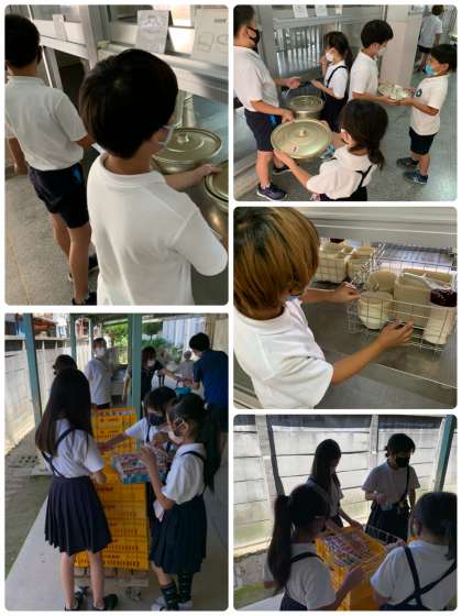 給食の後片付けは、5・6年生の給食委員会のお兄さんお姉さんが手伝ってくれました。