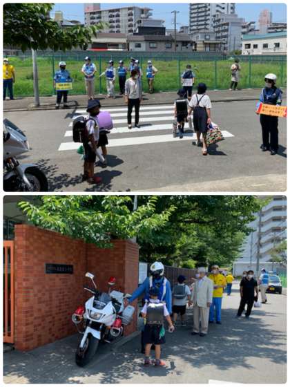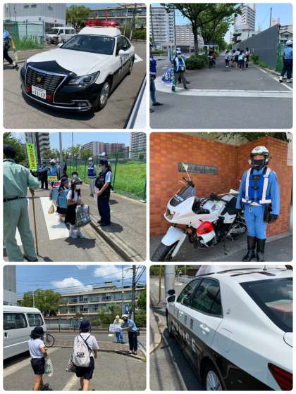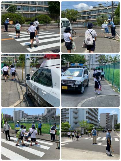 下校時には、大阪府警、平野区キャット隊、喜連西はぐくみネットのみなさんに、下校指導をしていただきました。