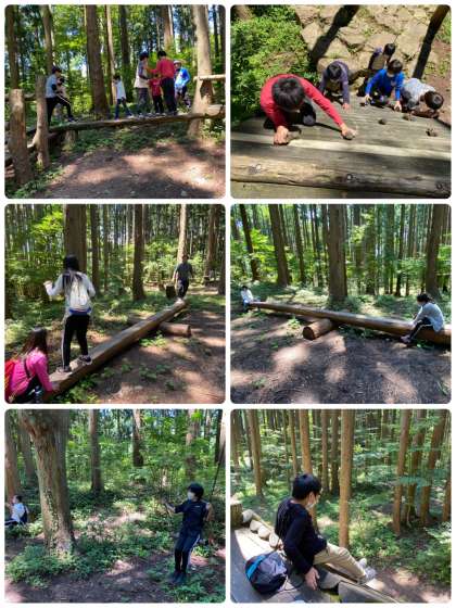 お友だちと散歩したり、アスレチックで遊んだりしています。