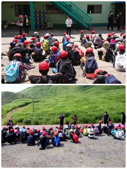 校長先生や宿舎の方のお話を聞き、これから登山です。