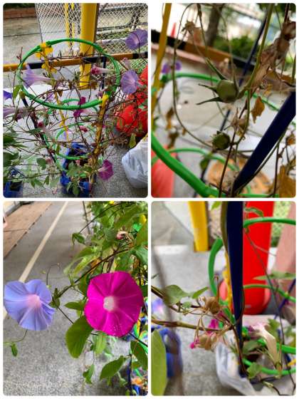 1年生のアサガオが、まだまだ咲いているものもあります。