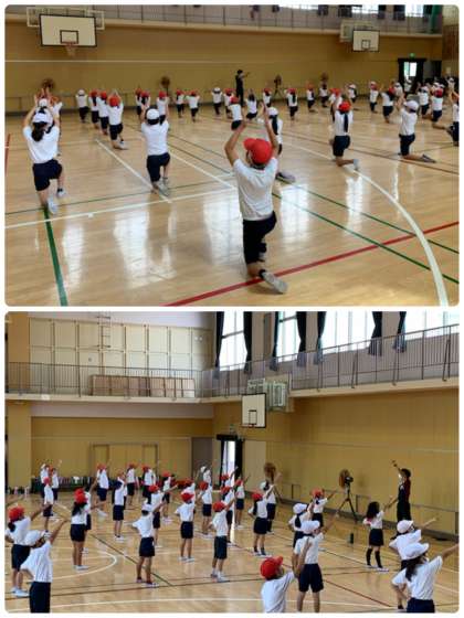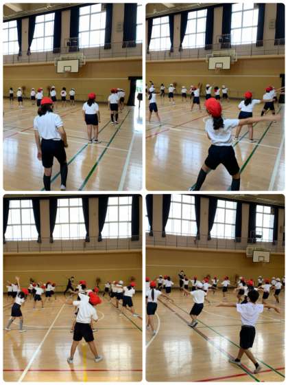 今日は、体育館でダンスの練習をしました。