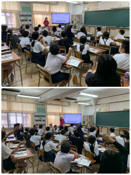 みんなで体を動かしながら発音し、とても楽しそうでした。