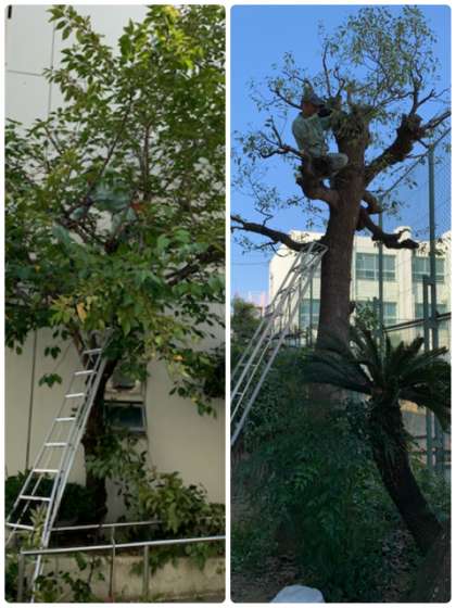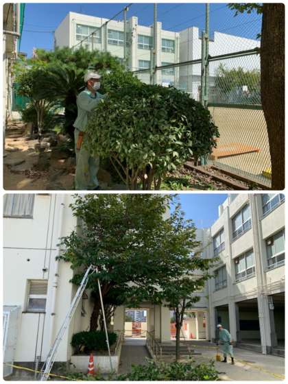 今日も、たくさんの伸びすぎた枝を切っていただき、運動場がきれいになりました。