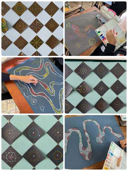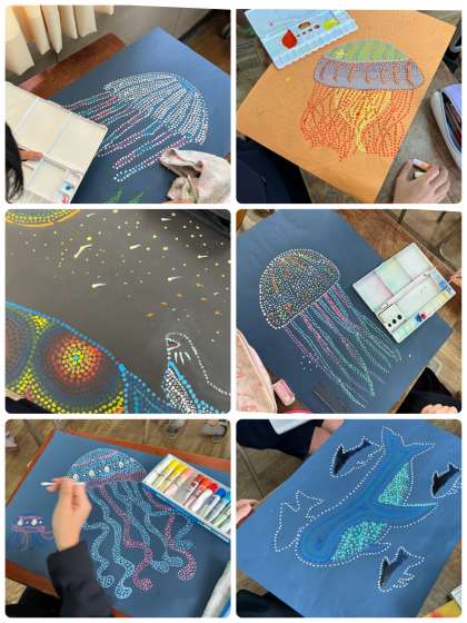 綿棒を使って、点で表現していきます。力作ができあがりそうで楽しみです。