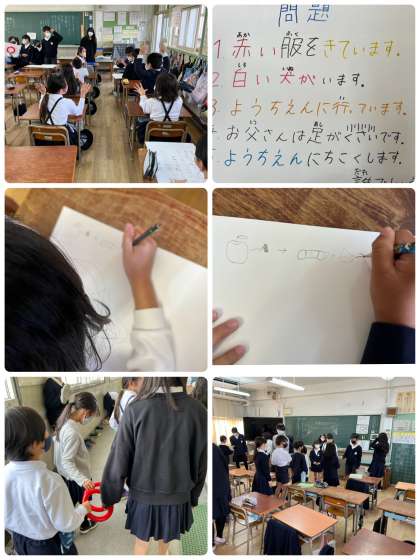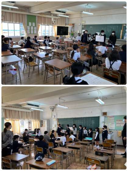 たてわり班ごとの教室で、ABCそれぞれのグループから課題をだして、他のグループがその課題を解きました。